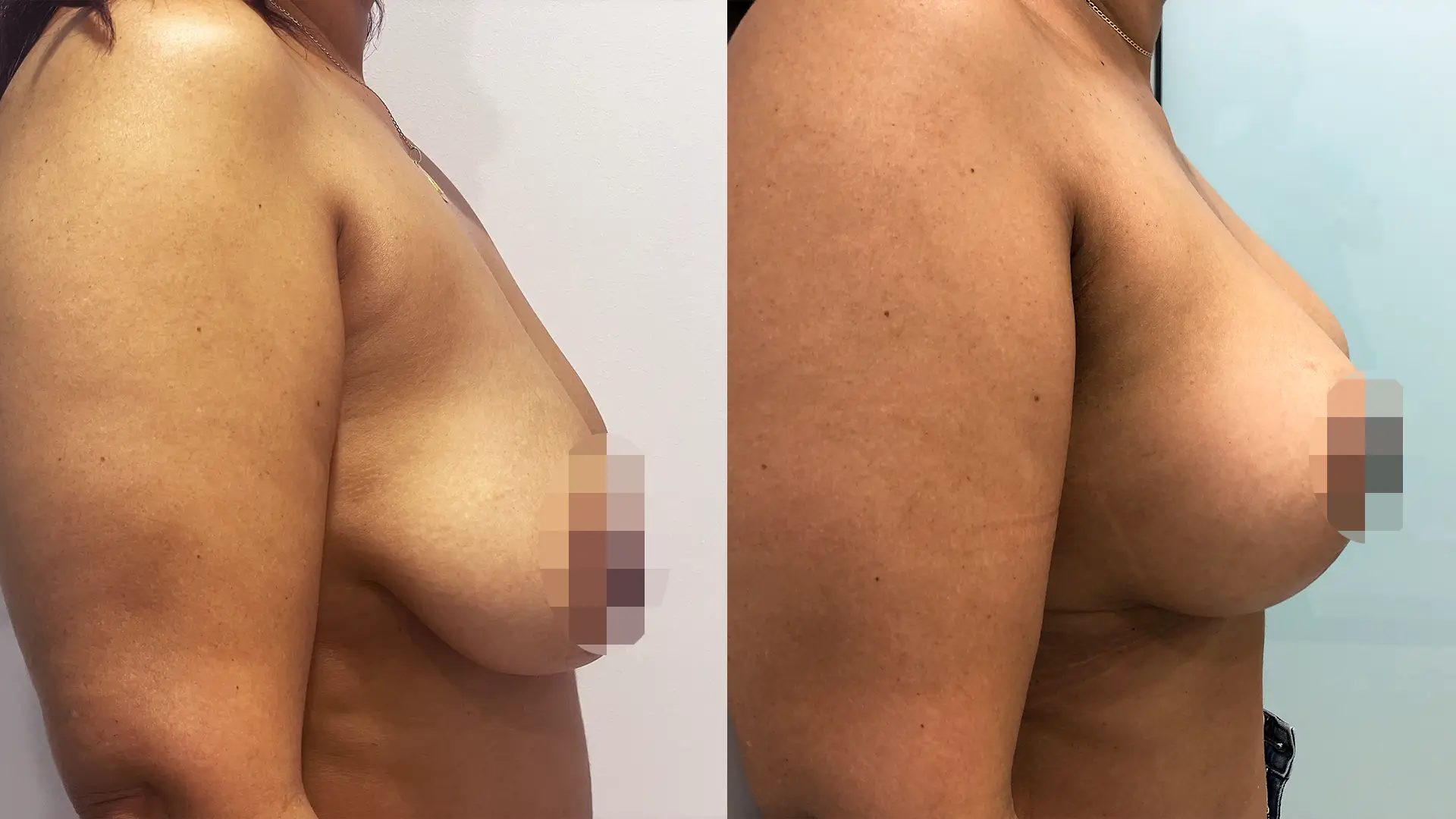Es una cirugía estética que combina el levantamiento del pecho (mastopexia) con la colocación de implantes para recuperar el volumen perdido y mejorar la forma del busto.